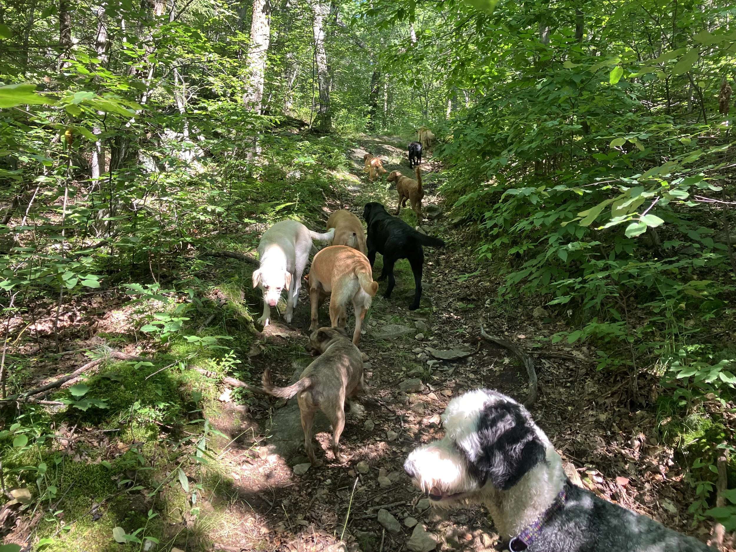 On Tuesdays, Thursdays and Fridays we offer our day-care service; Doggie Wag and Wander. Our day is comprised of two one-hour walks (9:30, 1:30), lots of playtime and some rest time. Please note that your dog must be well-behaved, non-aggressive and off-leash to participate. In addition, our walk includes a pond swim and potential mud; so your dog will likely be wet, dirty and happy upon pickup. The rate is $30/day per dog.